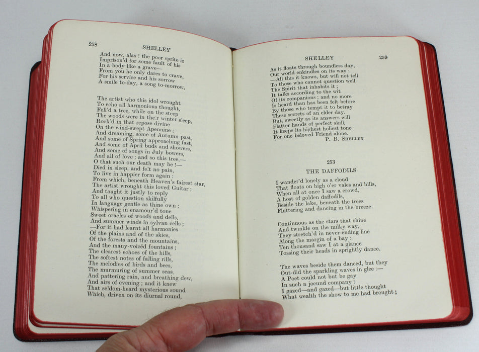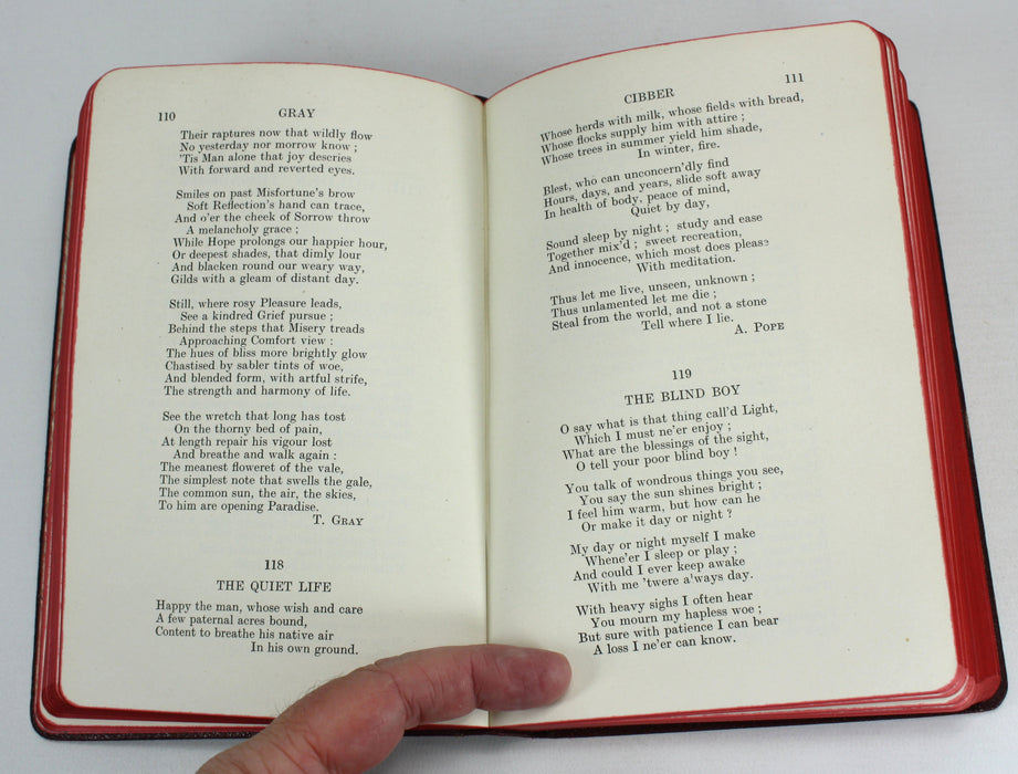 A very good book bound in maroon limp leather over stiff card. Just minor wear and bumping, with red edges. Spine is a little sunned, but still very presentable. Text bright and clean. Marbled endpapers. All soundly bound. An attractive and decorative volume.