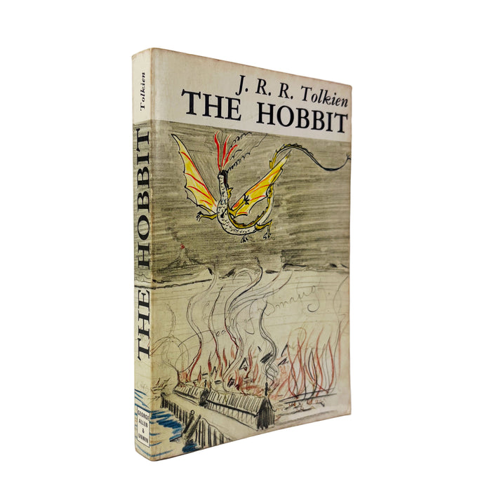A good copy of this paperback edition of The Hobbit, featuring an early sketch by Tolkien to the front cover. Covers with light wear and lower corner crease to rear. Ink obscuring price on rear cover. With some age spotting to interior edges of covers. All soundly bound - no loose pages.