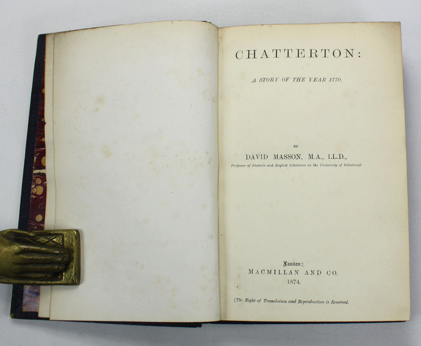 Chatterton; A Story of the Year 1770, David Masson, 1874