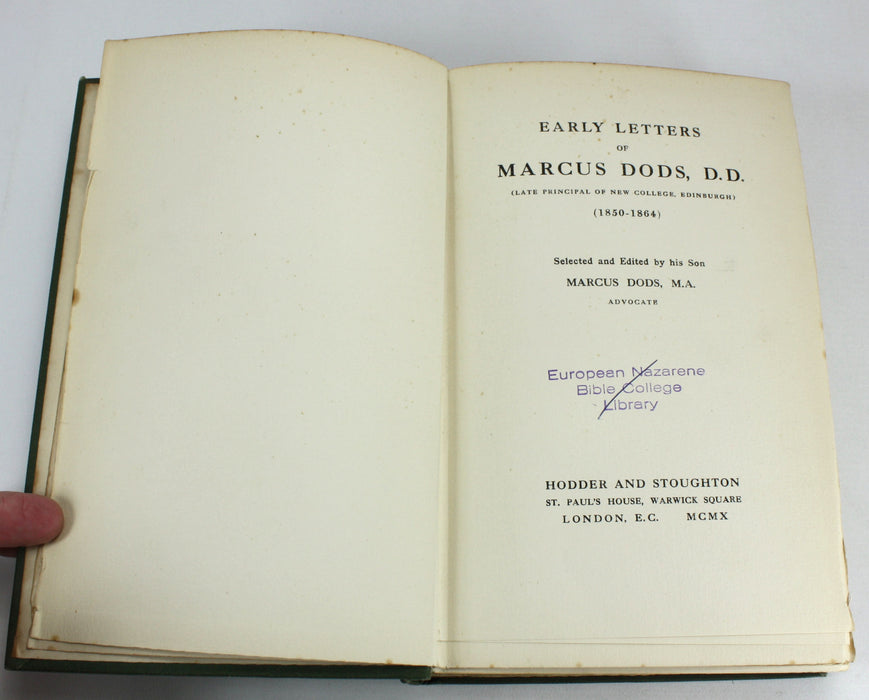 Early Letters of Marcus Dods, 1850-1864, selected and edited by his Son, 1910 - possibly author inscribed