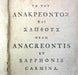 Anacreontis et Sapphonis Carmina, Foulis Press 1744