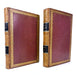 A very good set of two full leather hardbacks. Covers with tooled gilt and blind stamped border designs, and the spine with gilt tooled decoration (now faded and rubbed). The spine also has raised bands and each volume with 2 later burgundy gilt morocco title labels. Covers with some rubbing and wear, but all soundly bound. Gilt dentelles to interior. Leather is sunned to tan colour to spine and extremities whilst the boards retain a reddish brown hue.