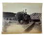 Striking timber-yard scene with a working elephant manoeuvring a massive teak beam under the guidance of its handler (pencil numbered 338/2 to verso).