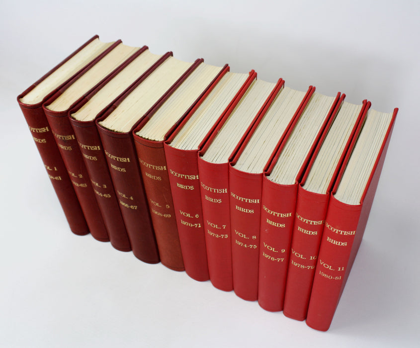 A handsome library set of 11 volumes of this Scottish ornithological journal, spanning Volumes 1-11, from 1958 to 1981. Each volume combining multiple issues.