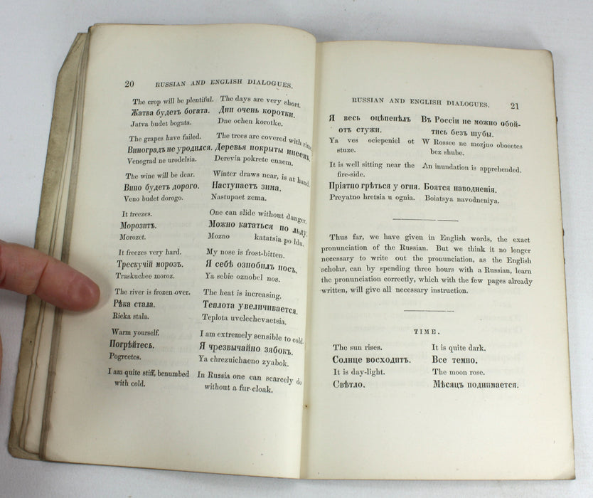 Russian and English Phrase Book; Specially adapted for the use of traders, travelers and teachers, by Agapius Honcharenko (1832-1916). He was a Ukrainian Orthodox Christian priest exiled in the United States, and a champion of human rights.