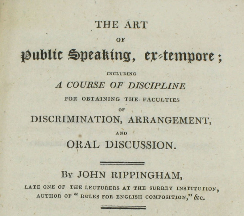The Art of Public Speaking, Ex-tempore; Including A Course of Discipline, John Rippingham, 1819