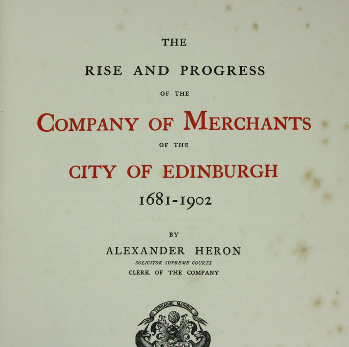 The Rise and Progress of the Company of the Merchants of the City of Edinburgh 1681-1902, Alexander Heron, Solicitor Supreme Courts, Clerk of the Company.