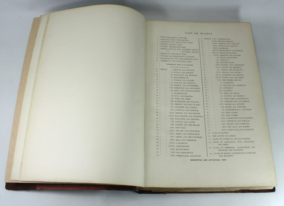 The Survey Atlas of England & Wales; A Series of Eighty-Four Plates of Maps and Plans, with descriptive text, illustrating the topography, physiography, geology, climate, and the political and commercial features of the country. Designed and prepared under the direction of J. G. Bartholomew, F.R.S.E., F.R.G.S.