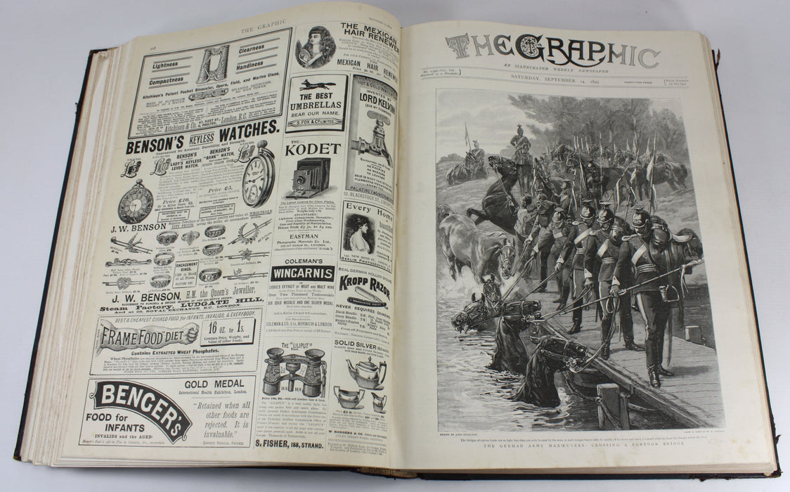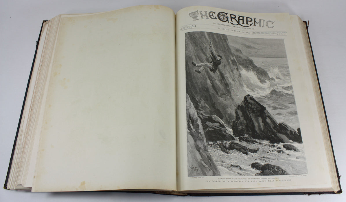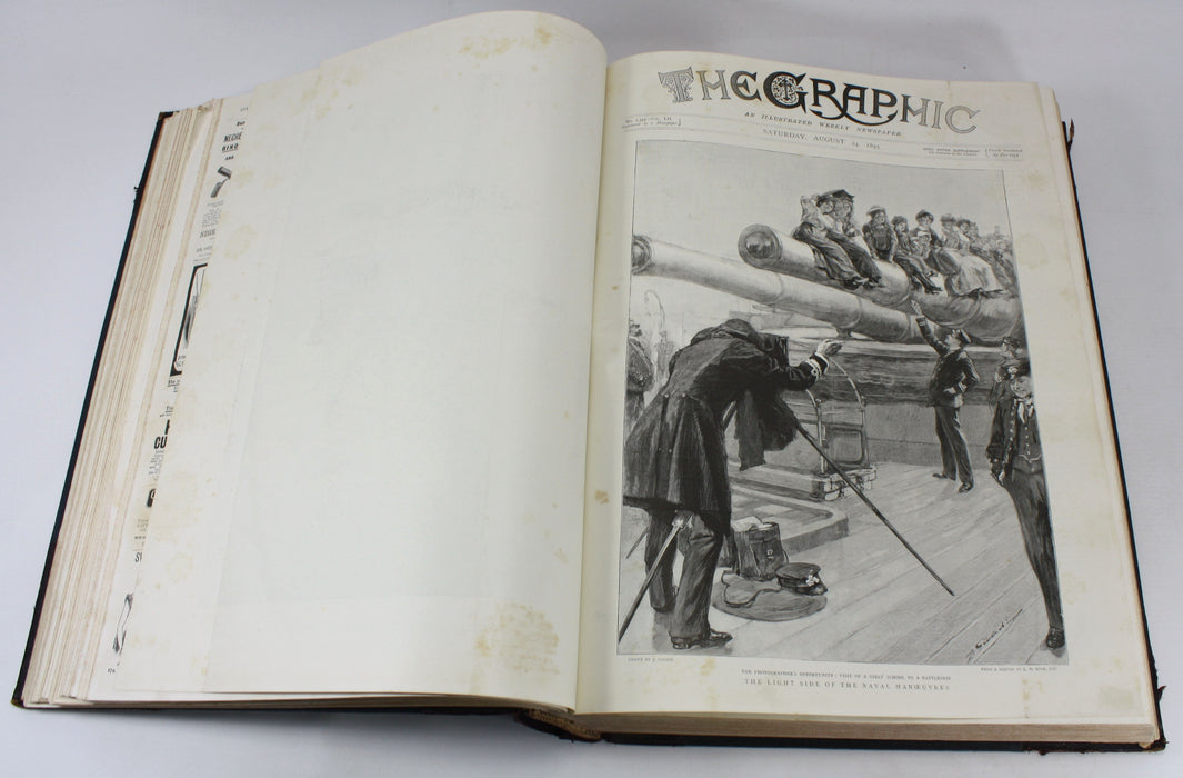 The Graphic; An Illustrated Weekly Newspaper; Volume 52, July - December 1895. A bound set of 6 months of The Graphic magazine in a typical library binding.