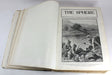 Large format hardback bindings with cloth covering. Covers are heavily worn - bumped and rubbed with the front cover completely detached, leather spine missing, and rear cover loose (which is not unusual for volumes of this weight). The first few pages are also detached and ragged. Inside, most of the text pages are actually very good. They are generally clean and in nice condition for a weekly of this age. There will be flaws - occasional page tears, foxing, stamp, creasing or loose page, but still a wonderful item to have.