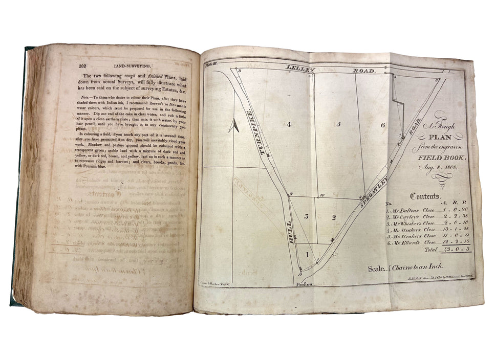 Printed by Thomas Wilson and Son, York; for Longman, Hurst, Rees, Orme and Brown, London; and for Wilson and Son, York. 1810 first edition. The book also includes the 'Field book for Nesbit's Land Surveying' which is bound in at the rear and was issued alongside the book (evidenced from the included Binder's instructions).