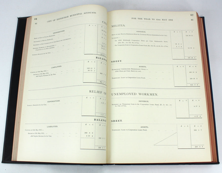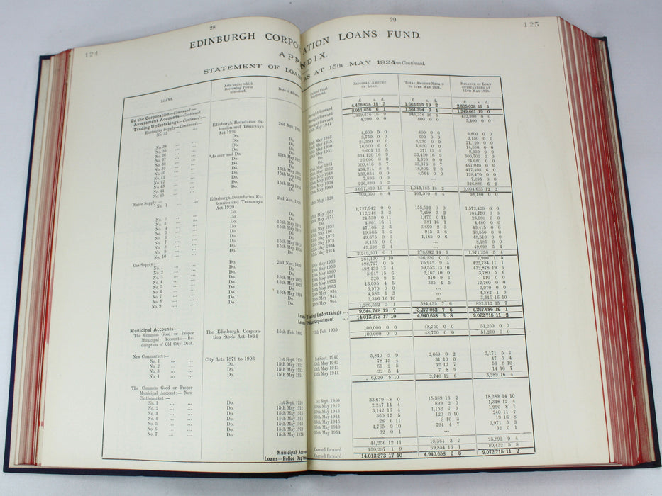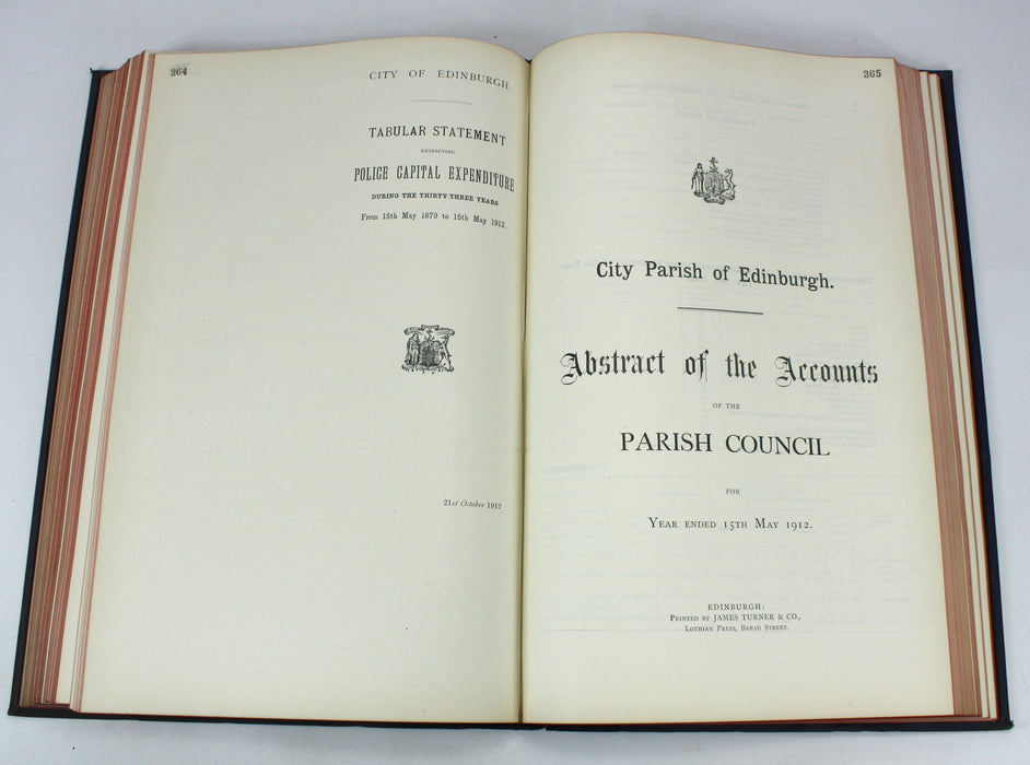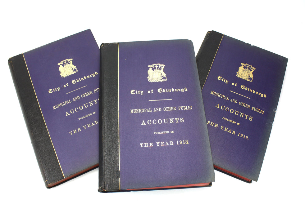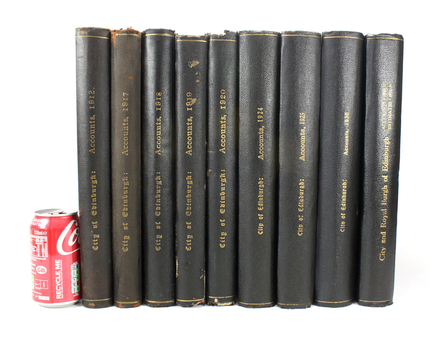 Published by The City of Edinburgh Council, City Chamberlain, Edinburgh. All first editions. Printers include H. & J. Pillans & Wilson, John Baxter & Son, Ltd, Thomas Allan and Sons, Edinburgh.