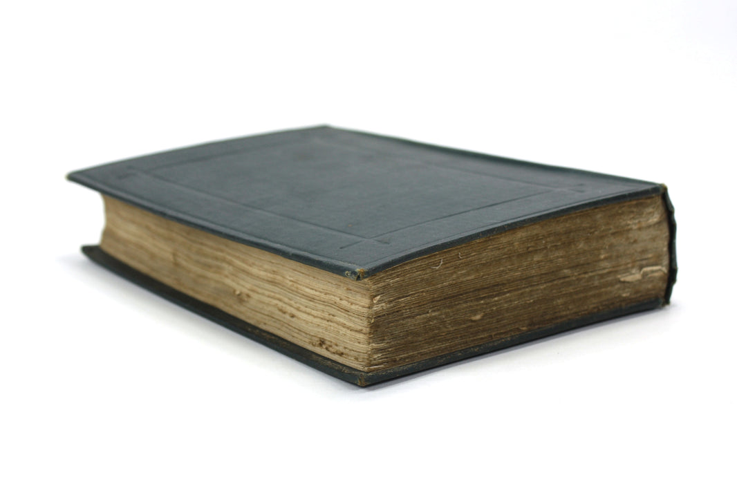 A very good teal green cloth hardback with gilt title to spine, and blind embossed decoration to covers. Mild bumping and wear to head and tail of spine. Some scuffing and markings to boards. Endpapers with some cracking, and offset foxing to first and last endpapers and light spotting to free endpapers. A little give in the spine, although all still securely bound.