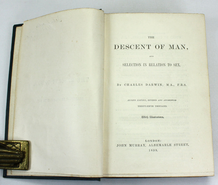 Charles Darwin; The Descent of Man and Selection in Relation to Sex, John Murray, 1899, Second edition, Thirty-Fifth Thousand