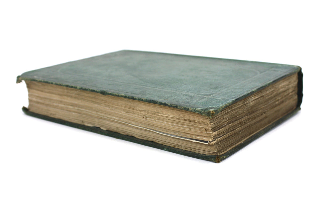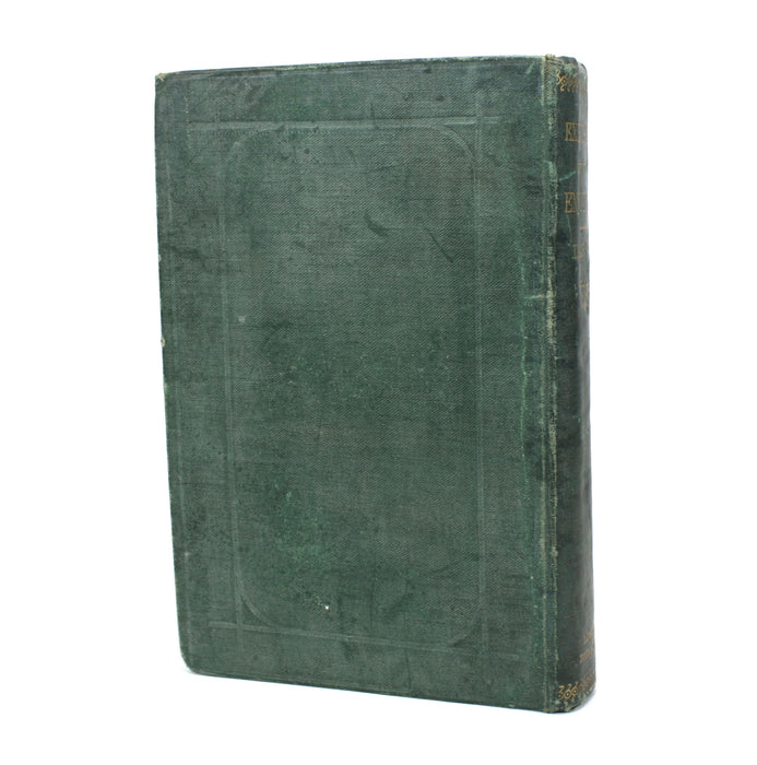 A fair to good green cloth hardback with gilt title to spine, and blind embossed decoration to covers. With bumping and wear and mottled discoloration to covers. With black endpapers with intact hinges, but weakening. Title page present but partially detached, and split to gutters after the free endpapers at either end of the book.