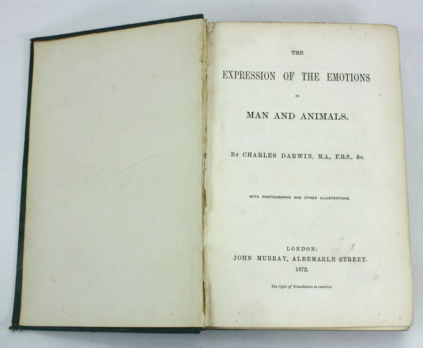 Charles Darwin; The Expression of the Emotions in Man and Animals, John Murray, 1872, First edition, second issue