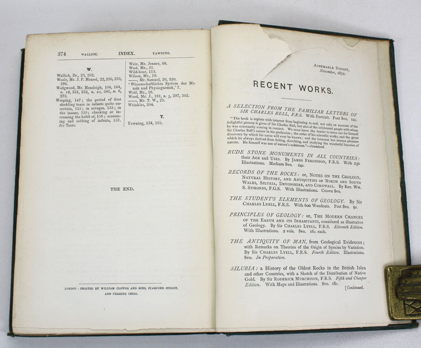 Published by John Murray, London, 1872. First edition, second issue - Publisher's advertisements dated to November 1872, on p.208 contains 'htat' misspelling on the first line.