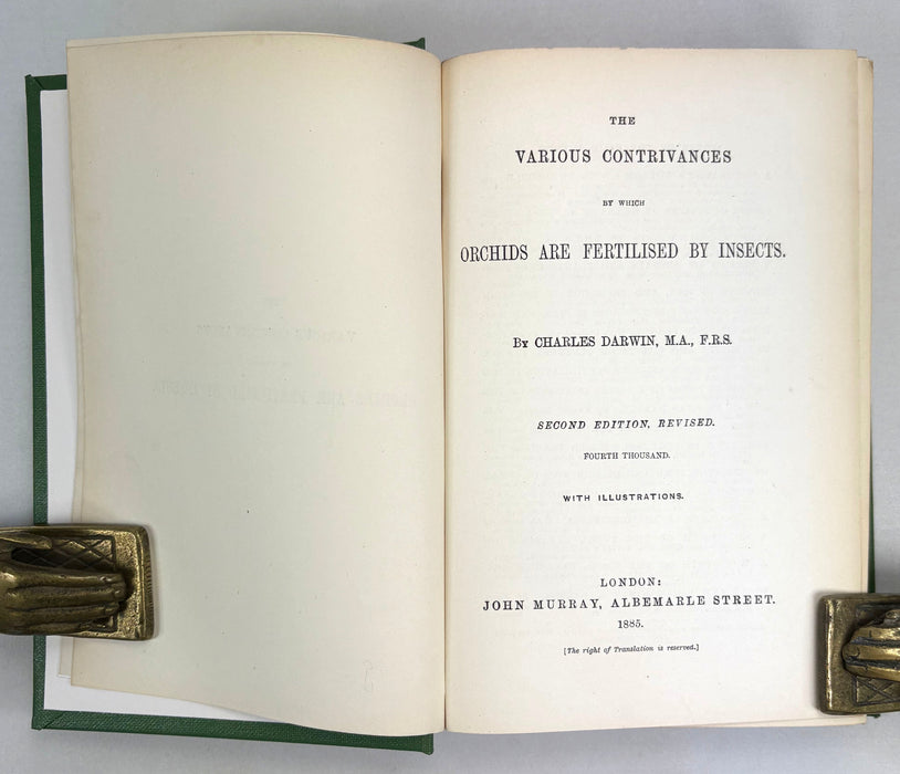 Charles Darwin; The Various Contrivances by Which Orchids are Fertilised by Insects, 1885, Second Edition, Revised, Fourth Thousand, John Murray