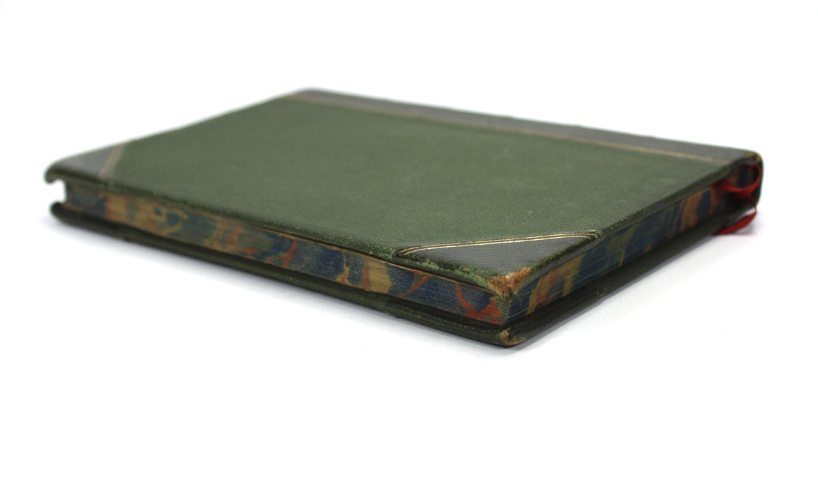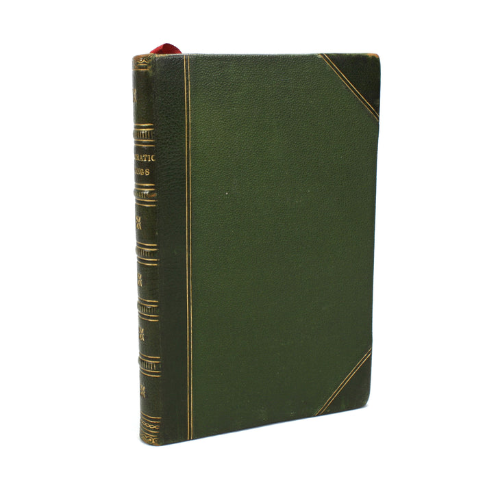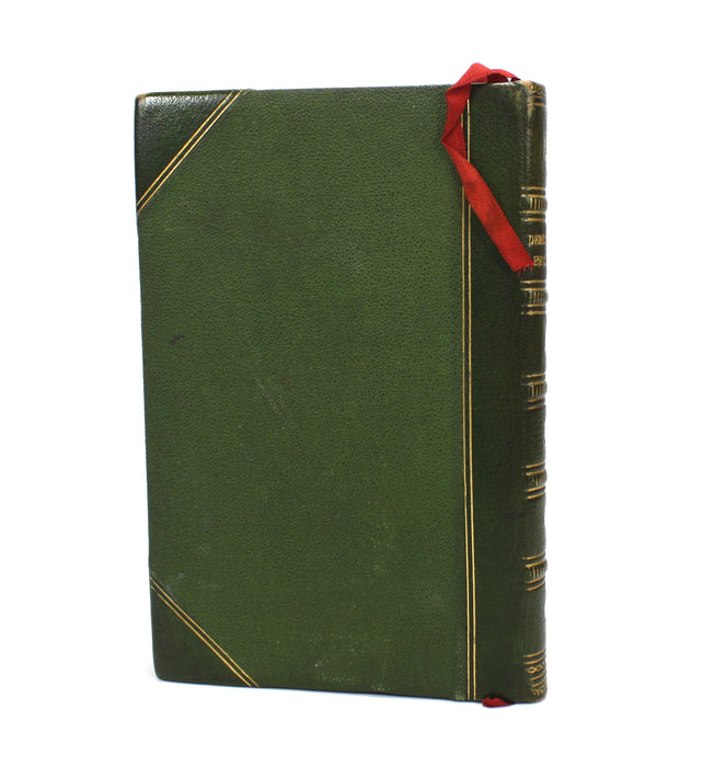 A good (approaching very good) hardback with dark green leather spine and corners, and raised bands, gilt tooled decoration and title to spine. Green buckram cloth over boards. Covers with some bumping and wear. Marbled edges to text block. Plain green endpapers, with previous owner's signature to first pastedown. Soundly bound.