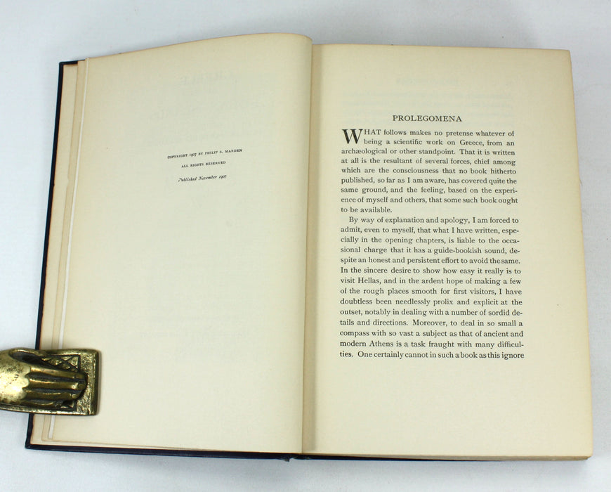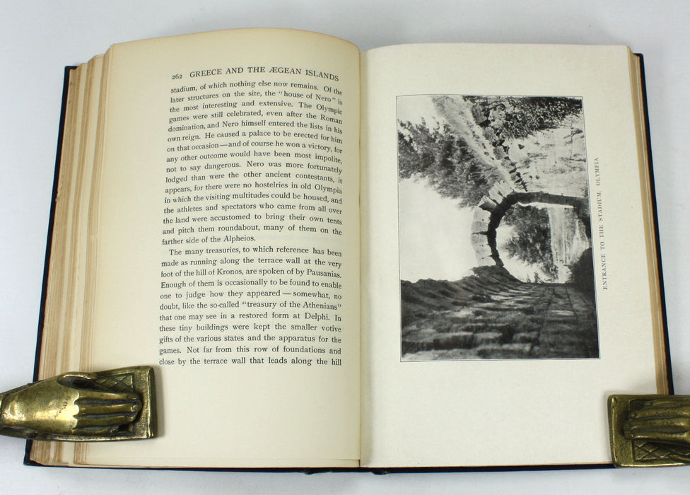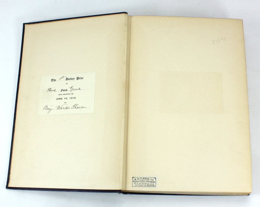 A good dark blue hardback with printed pictorial cover with gilt titles to front and spine. Central panel depicts the view from Corfu towards 'Mouse Island'. Covers bumped with mild wear to extremities and a little frayed to head and tail of spine. Prize binding - the rear cover carries a gilt St. Paul's School (Concord, New Hampshire) emblem with the school's motto - Ea discamus in terris quorum scientia perseveret in coelis (Let us learn those things on Earth the knowledge of which continues in Heaven), with a prize label to the first pastedown dating to 1912. Small bookseller's sticker to first free endpaper. There is a little give in the front cover hinge. Spine slightly darkened.