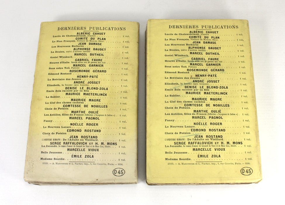 A good (to very good) set of 2 original paperbacks in original printed wraps. This type of French books from this era are often very brittle with disbound pages, but this set has remained intact. Covers with some sun fading and minor spotting and wear with a few marks.