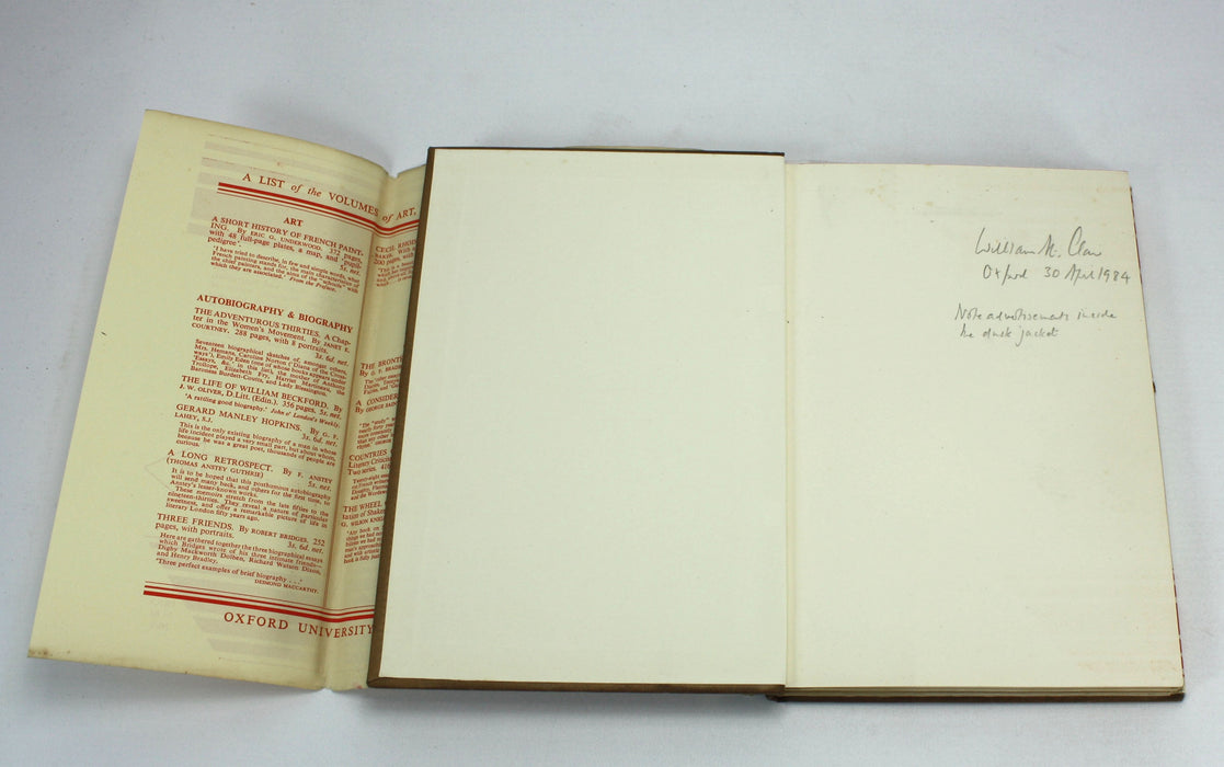 Published by Oxford University Press, London, New York, Toronto. 1938 Reissue in 'The Oxford Bookshelf' version, of the 1934 first edition. Scarce.