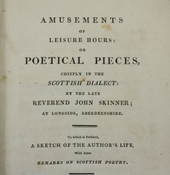 Amusements of Leisure Hours; or Poetical Pieces, Chiefly in the Scottish Dialect; By the Late Reverend John Skinner; at Longside, Aberdeenshire. To which is prefixed, A Sketch of the Life of the Author's Life, with some Remarks on Scottish Poetry.