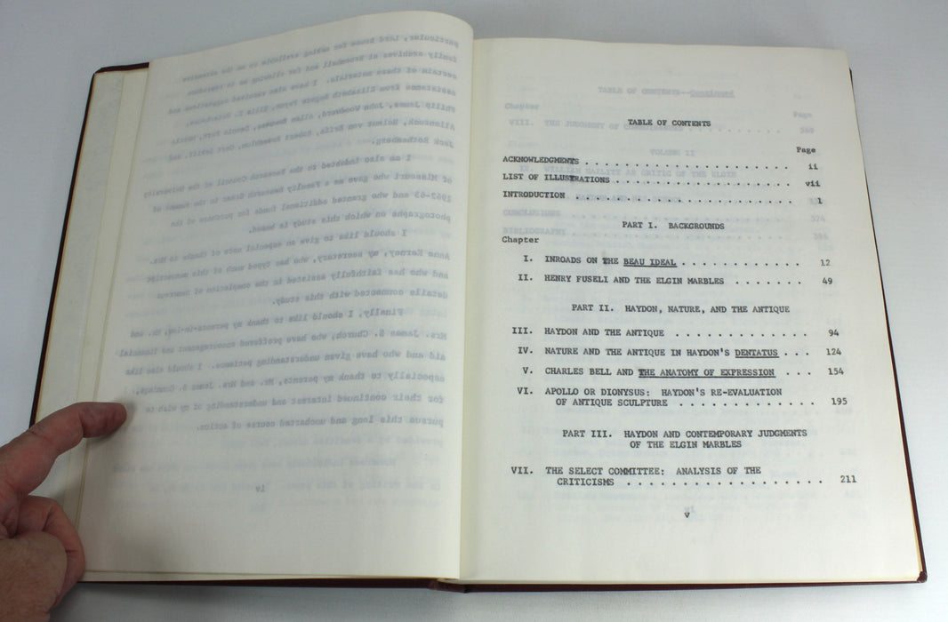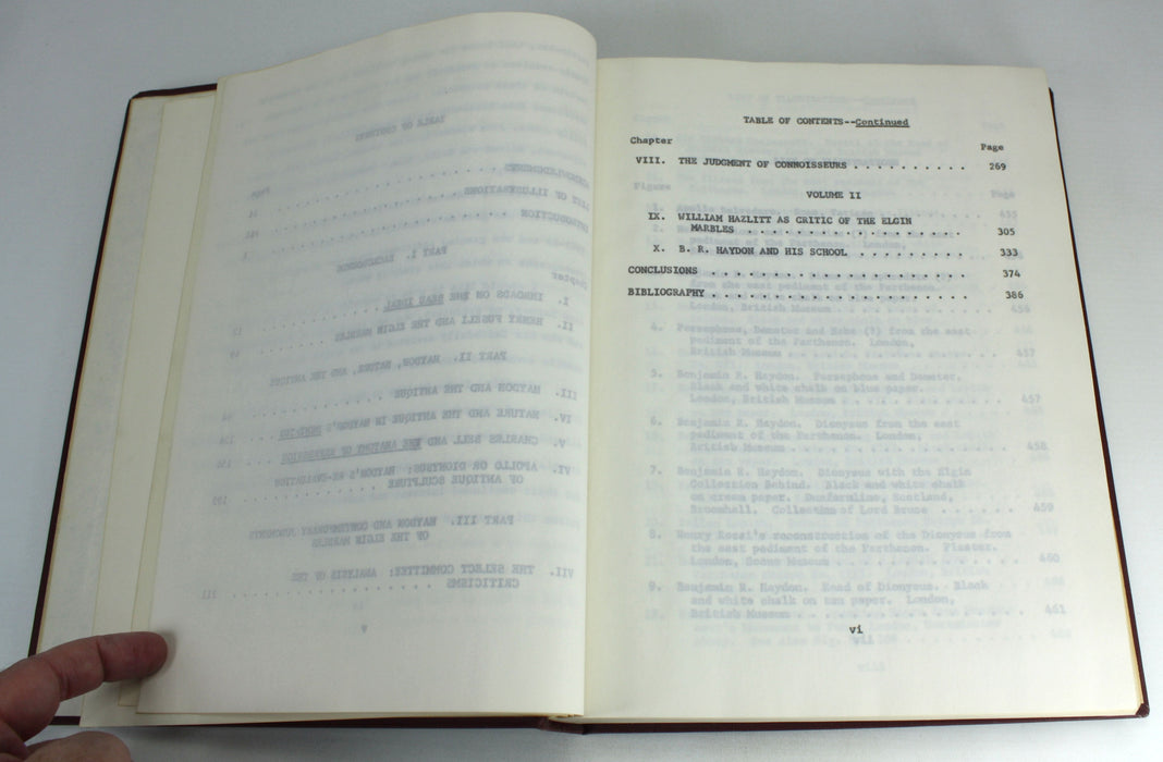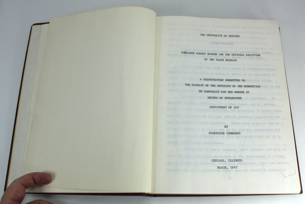 Benjamin Robert Haydon and the Critical Reception of the Elgin Marbles; A Dissertation Submitted to the Faculty of the Division of the Humanities in Candidacy for the Degree of Doctor of Philosophy, Department of Art. By Frederick Cummings, Chicago, Illinois, March, 1967. Volume 1 (of 2).