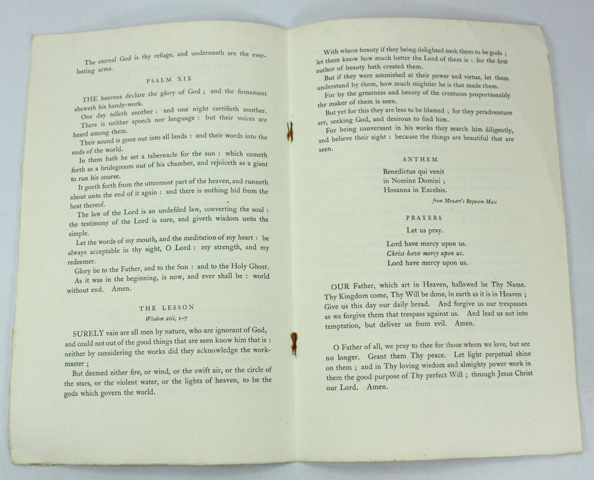 From the Memorial Service for British artist, William Nicholson (1872-1949) at Saint Martin-In-The -Fields church in London. Nicholson was a fine artist producing portraits, still-lifes and landscapes. He was also a printmaker, illustrator and author of children's books. This booklet contains the hymns and prayers from the service.