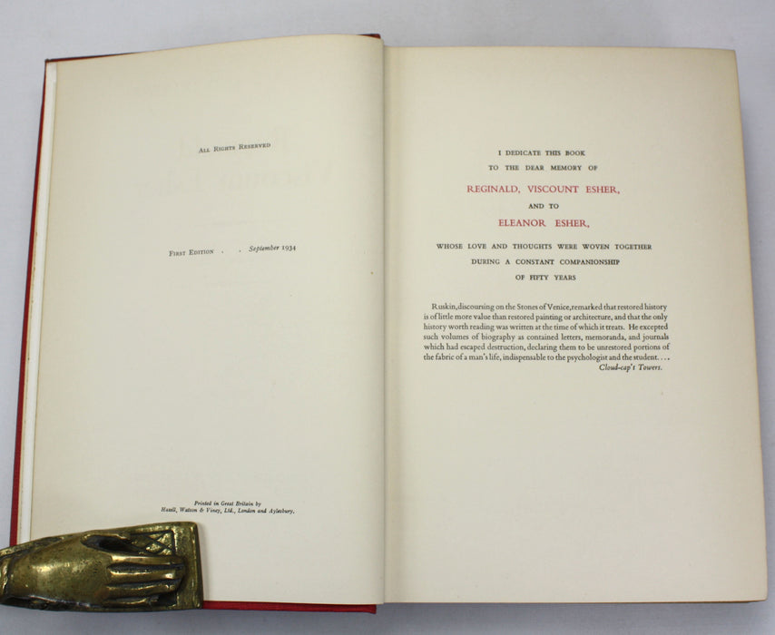 Biography of the British historian and Liberal politician, Reginald Baliol Brett (1852-1930). Journals and Letters of Reginald Viscount Esher. First 2 volumes edited by Maurice V. Brett, and Vols 3 and 4 edited by Oliver, Viscount Esher (following his brother's death) 4 Volume Set, Complete.