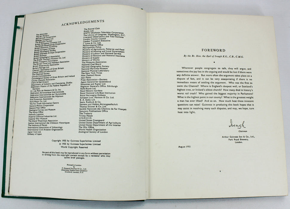 Published by Guinness Superlatives Limited, London. Preface dated to August 1955, which denotes this first trade printing. It proved so popular that it was already being reprinted in September, and the preface date was updated to show that.