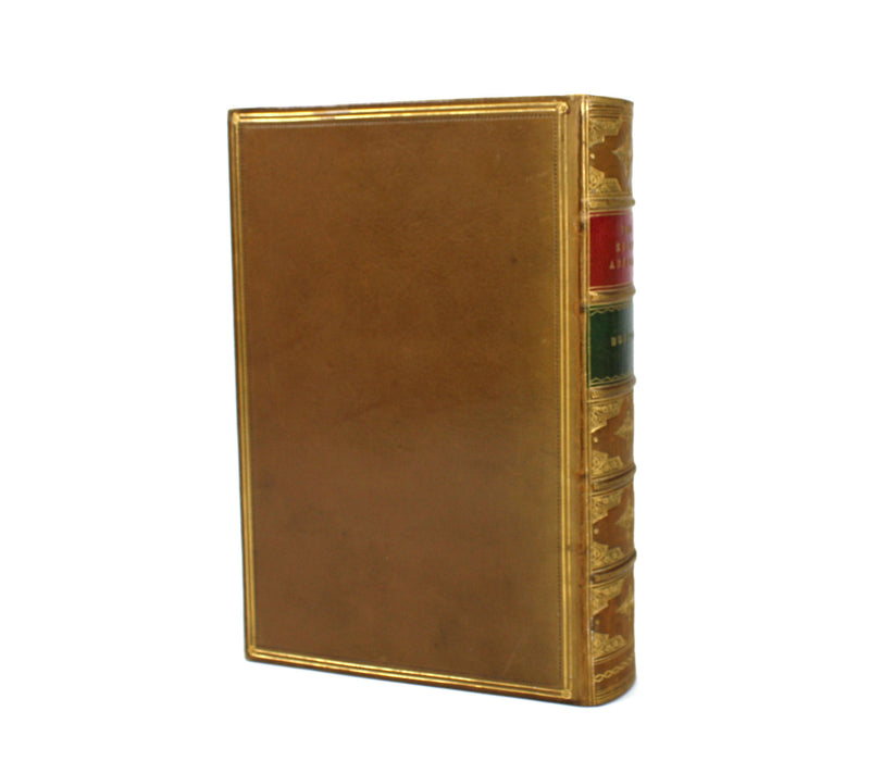 A very good leather hardback (would be near fine, except for the spotting to text block edges) in full tan polished calf, with gilt borders to covers and spine with tooled gilt decoration, raised bands and green and red morocco labels. Minor cover rubbing. Marbled endpapers - small adhesion mark to front endpapers, but minor. Shiny gilt top edge. Soundly bound.