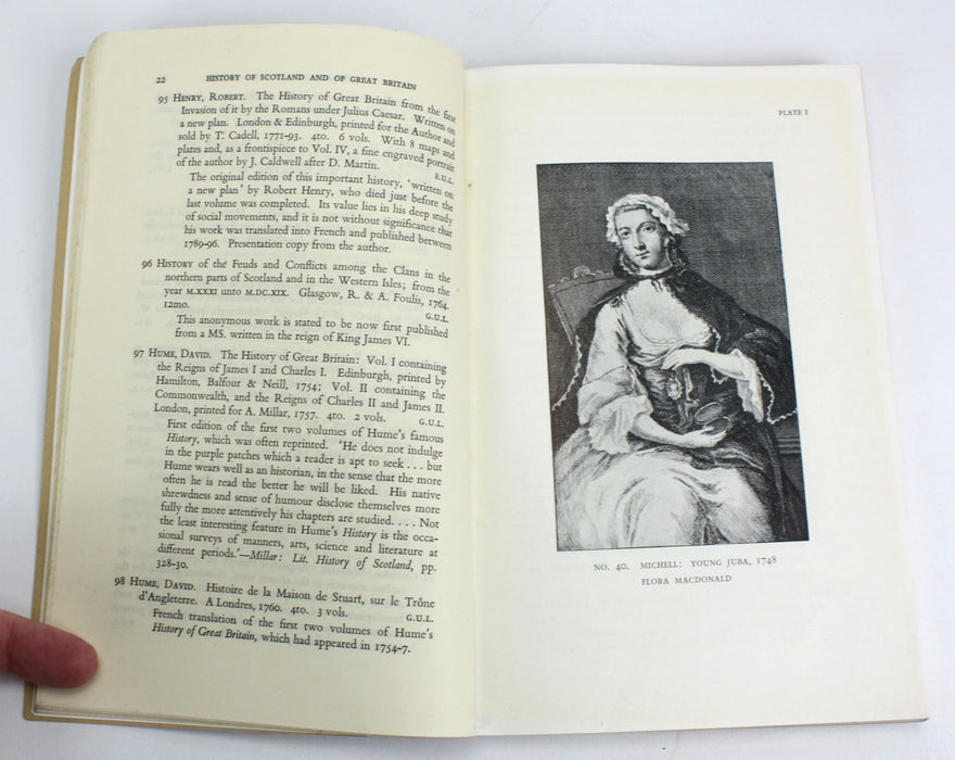 An important catalogue containing bibliographical data on some 779 18th Century Scottish Books. Illustrated with frontispiece of David Hume and XIV plates. Previous owner's name in pencil on first free endpaper - L. W. Sharp, from Edinburgh University Library, who was one of the Advisory Panel for the Exhibition.