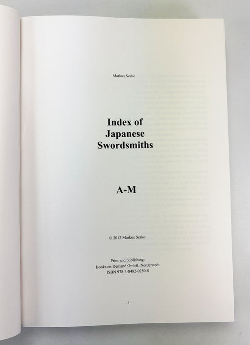 Index of Japanese Swordsmiths, by Markus Sesko. 2 Volumes complete; A-M and N-Z.