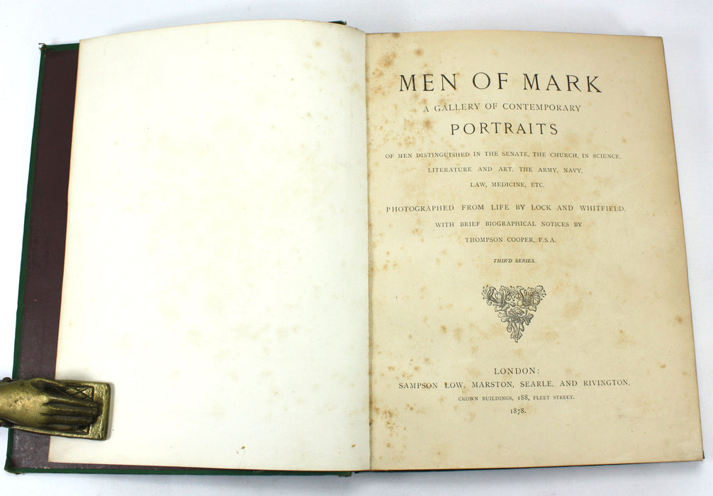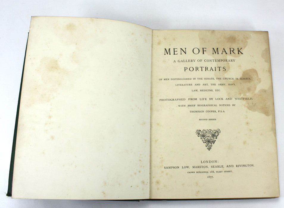 Men of Mark; A Gallery of Contemporary Portraits, Photographed by Lock and Whitfield, Thompson Cooper, 1876-1881. Chiswick Press.
