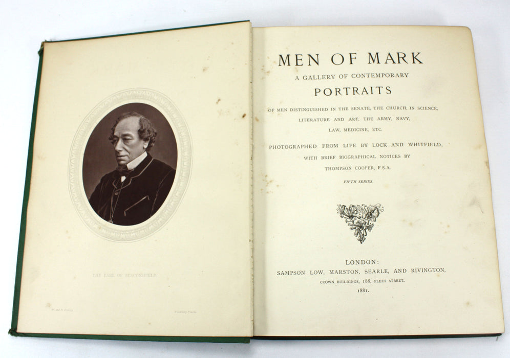 Men of Mark; A Gallery of Contemporary Portraits of Men Distinguished in the Senate, the Church, in Science, Literature and Art, the Army, Navy, Law Medicine, etc. Photographed from Life by Lock and Whitfield, with Brief Biographical Notices by Thompson Cooper, F.S.A.. Preface by George C. Whitfield. 5 Volumes.