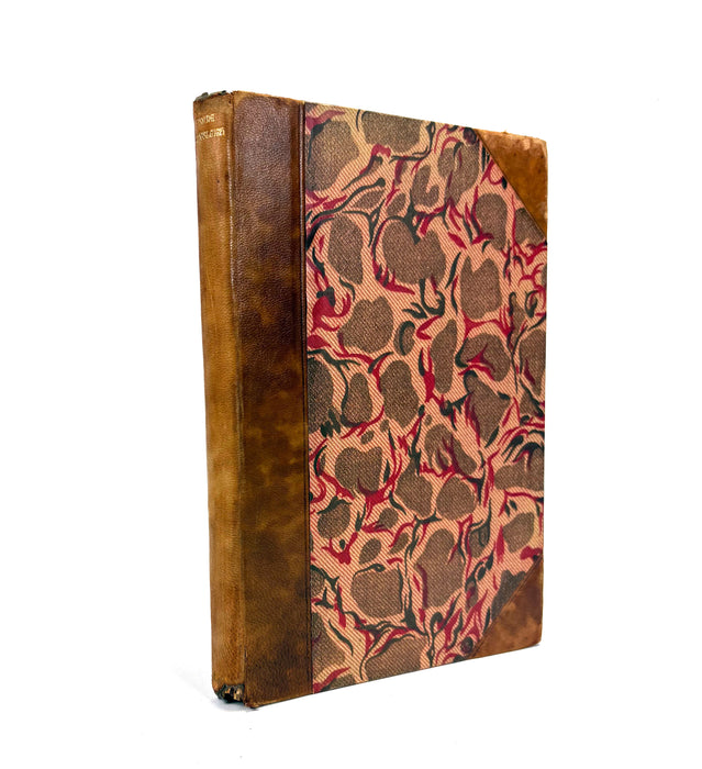 A good to very good hardback, bound with tan leather spine and corners with printed patterned paper over boards. Gilt title to head of spine. Leather has some scuffing, bumping and wear and is chipped to head and tail of spine. With green floral endpapers, with a stain to the first free endpaper.