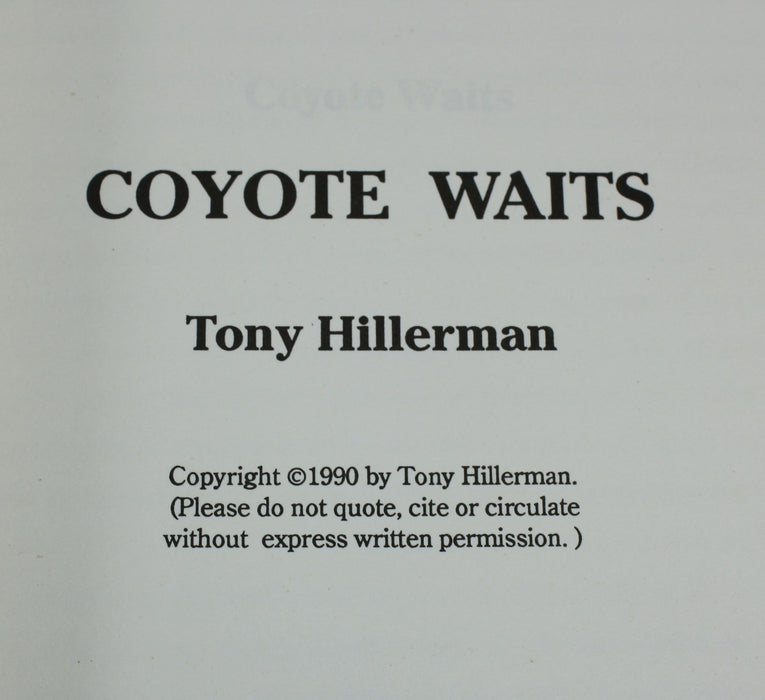 Tony Hillerman; Advance Reading Copy from an Uncorrected Manuscript, Coyote Waits, 1990