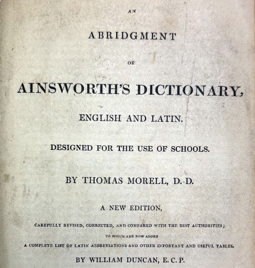 An Abridgement of Ainsworth's Dictionary, English and Latin. Designed for the Use of Schools. By Thomas Morrell, D.D. A New Edition. Carefu...