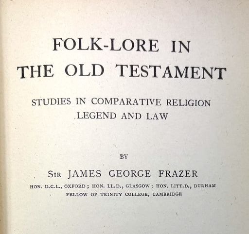 Folk-Lore in the Old Testament; Studies in Comparative Religion, Legend and Law, Sir James George Frazer, 3 Vols complete, 1919
