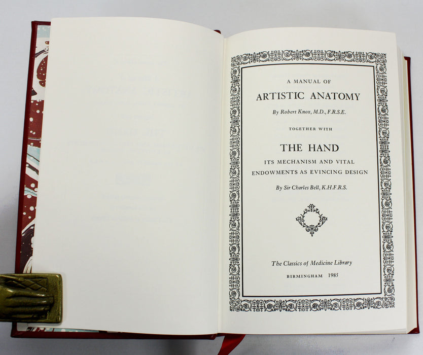 A Manual of Artistic Anatomy, Robert Knox, Together with The Hand; Its Mechanism and Vital Endowments as Evincing Design, Sir Charles Bell, The Classics of Medicine Library, 1985