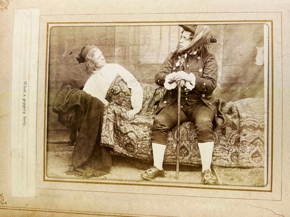 There are 37 photographs in total (3 missing), each with actors in full costume enacting scenes from the play in theatrical studio sets. A rather wonderful album.