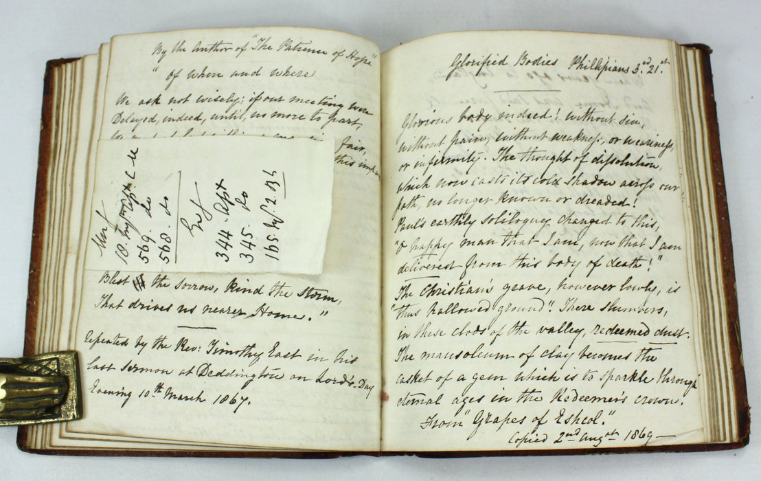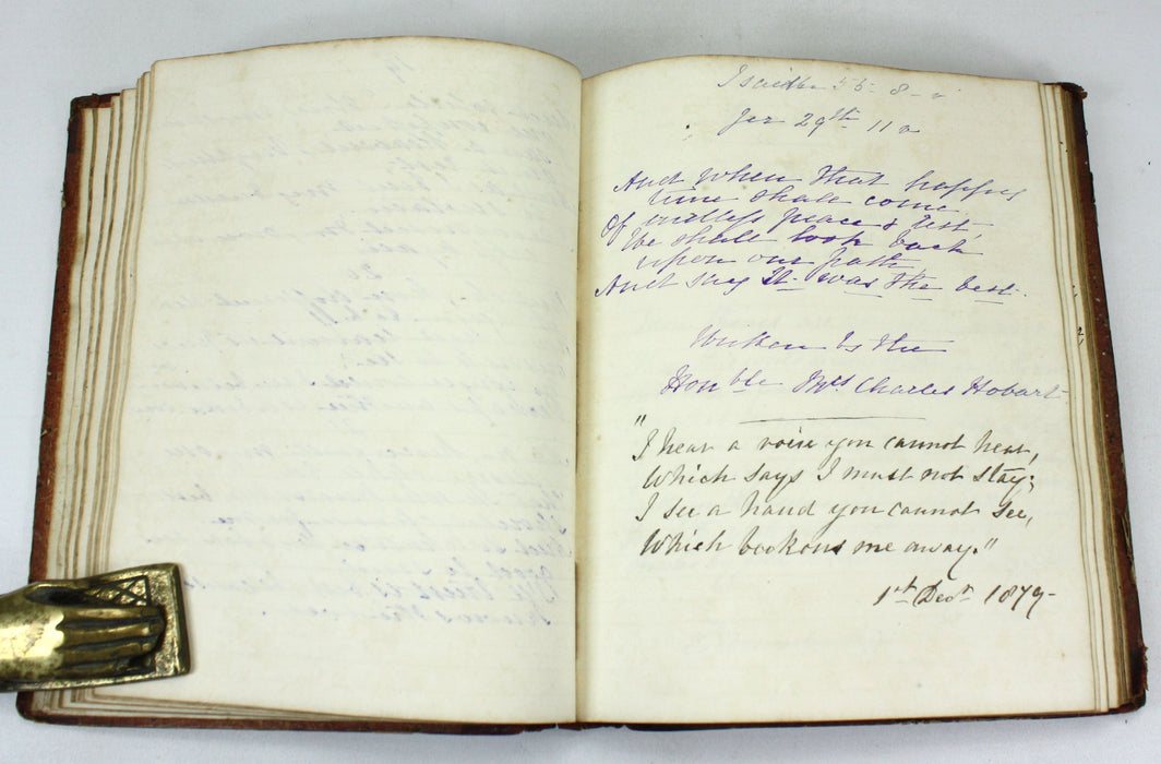 An interesting book of transcribed handwritten poetry by a variety of poets, with the writer noting the date they have transcribed the poetry, spanning a large part of the Victorian era. There are also a good number of biblical and Christian writings.