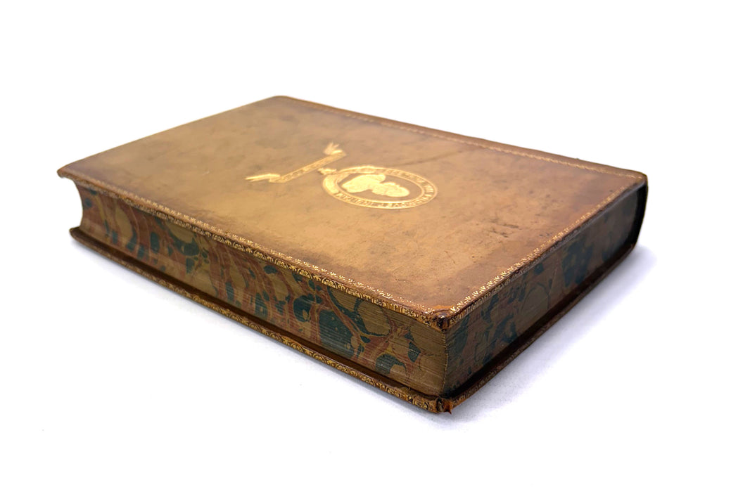 A good full polished calf leather hardback with some wear and bumping. With gilt borders to covers and 'Edinburgh Institution' gilt roundel to front. Raised bands and gilt tooled decoration to spine. The title label now absent. Prize binding with prsentation l;abel dated to 1899 on the first pastedown. Marbled endpapers. Front inner hinge split to gutter after first free endpaper, but all still bound.