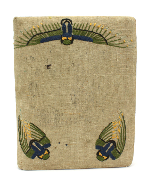 This consists of a hardback album with padded hand embroidered covers with an art deco motif.