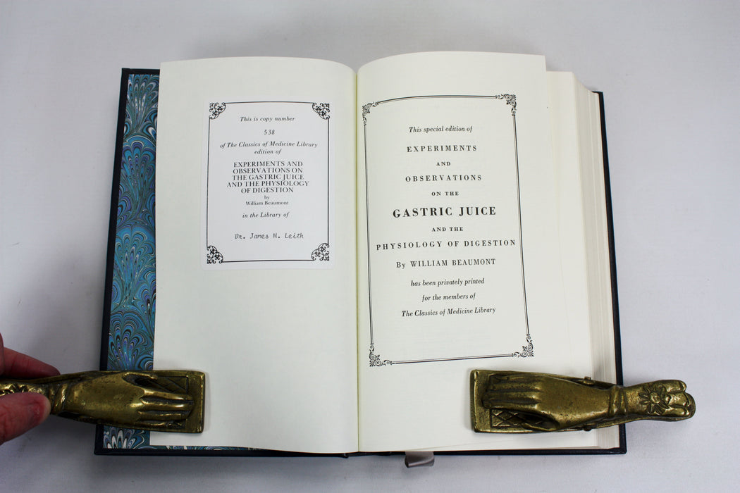 Experiments and Observations on the Gastric Juice and the Physiology of Digestion, Sir William Beaumont, The Classics of Medicine Library, 1980