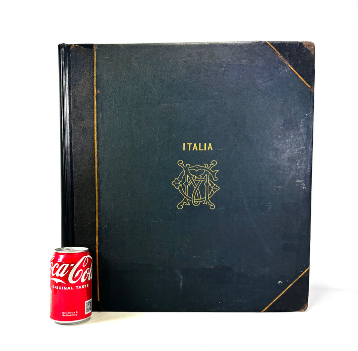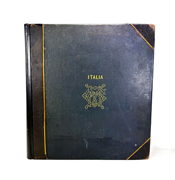 A monumental photo album of large folio size (46cm x 43cm) carrying the gilt initialed monogram 'M.G.'. Undated, but c. 1880-1890. The album is titled 'Italia'.