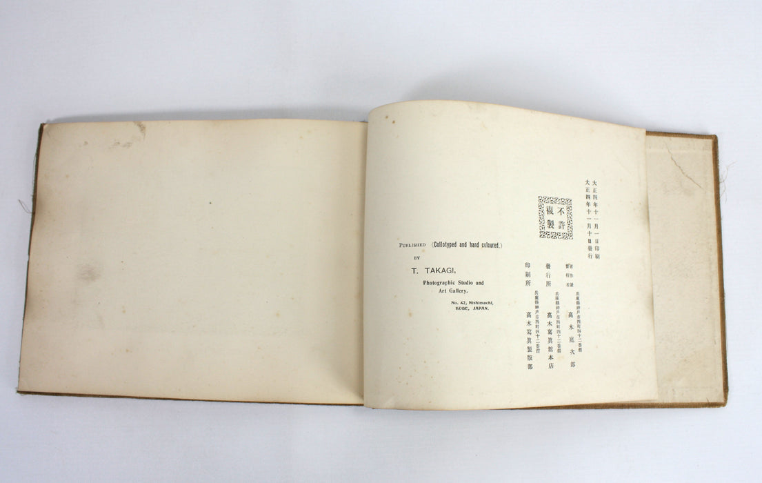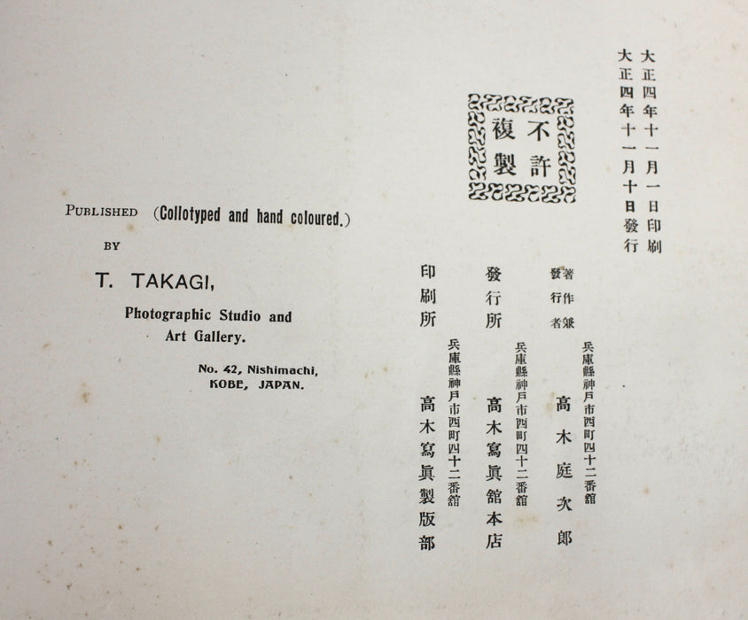 Published by T. Takagi, Photographic Studio and Art Gallery. No. 42, Nishimachi, Kobe, Japan.