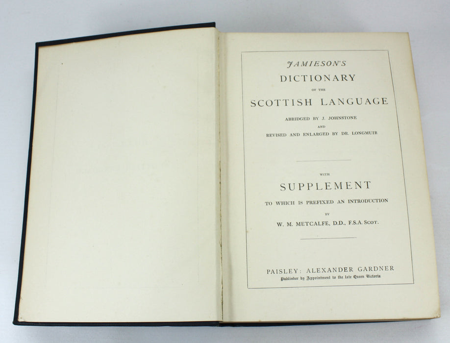 Jamieson's Dictionary of The Scottish Language, Abridged by J. Johnstone, and Revised and Enlarged by Dr. Longmuir, with Supplement to Which is Prefixed an Introduction by W.M. Metcalfe, D.D., F.S.A. Scot.