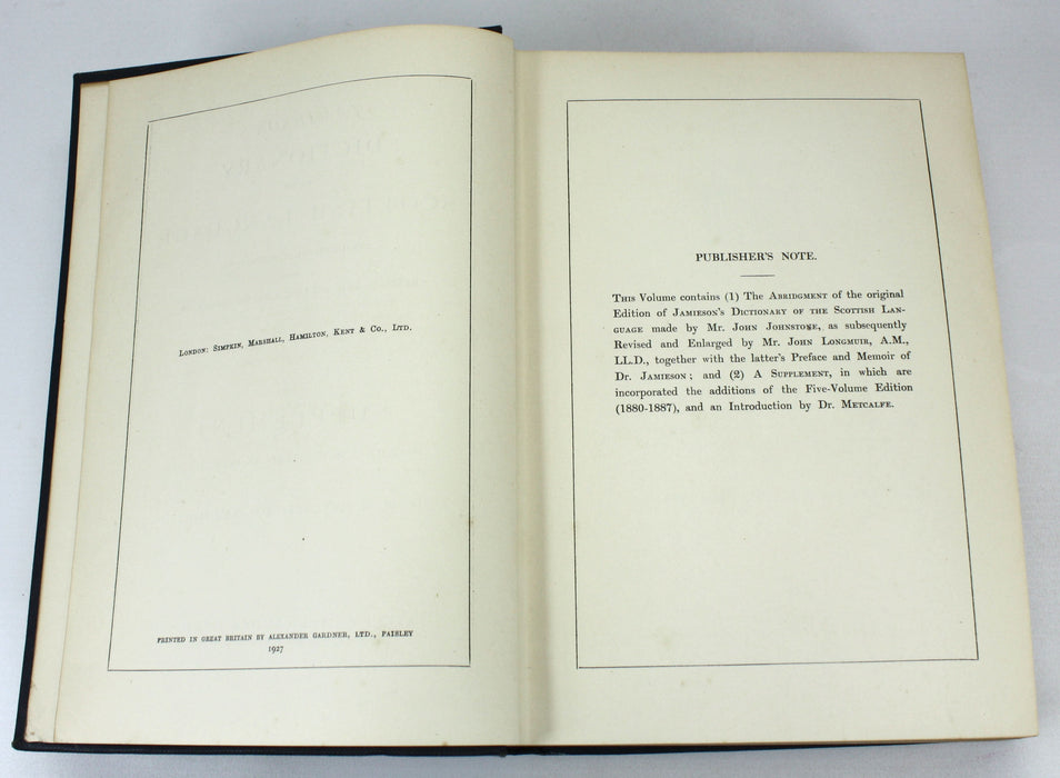 Jamieson's Dictionary of The Scottish Language, J. Johnstone, Dr. Longmuir, W.M. Metcalfe, 1927